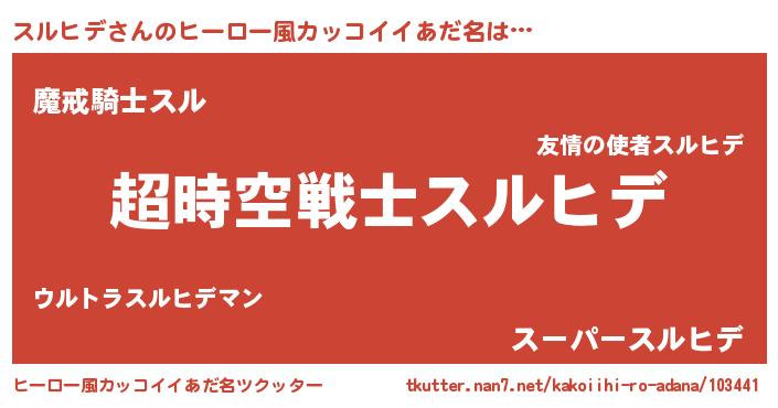 | 女子向けラノベタイトル風あだ名 | 『スルヒデなんてお断りですっ。』 |