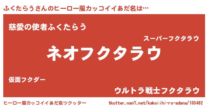 | 男性向けラノベタイトル風あだ名 | 『ふくたらうという概念が存在しない退屈な世界 』 |