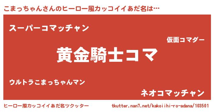 | 胡散臭い通販商品みたいなあだ名 | 『信頼と実績のサプリメント…その名も「こまっちゃん」』 |