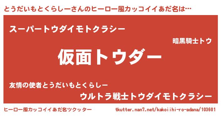 | 意味不明あだ名 | 『住所不定無職とうだいもとくらしー(53歳)』 |