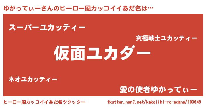 | 男性向けラノベタイトル風あだ名 | 『この素晴らしい世界にゆかってぃーを!』 |