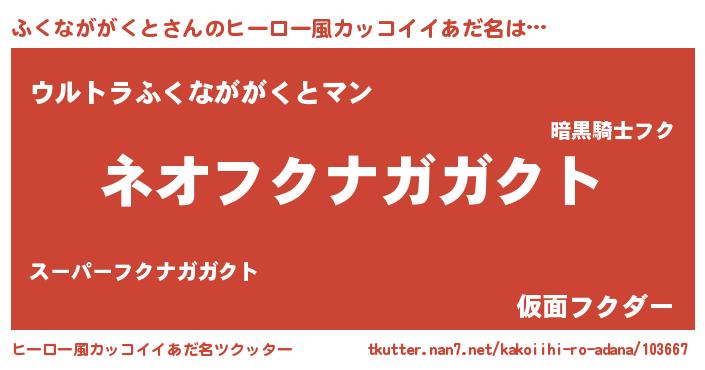 | 男性向けラノベタイトル風あだ名 | 『転生したらふくなががくとだった件』 |