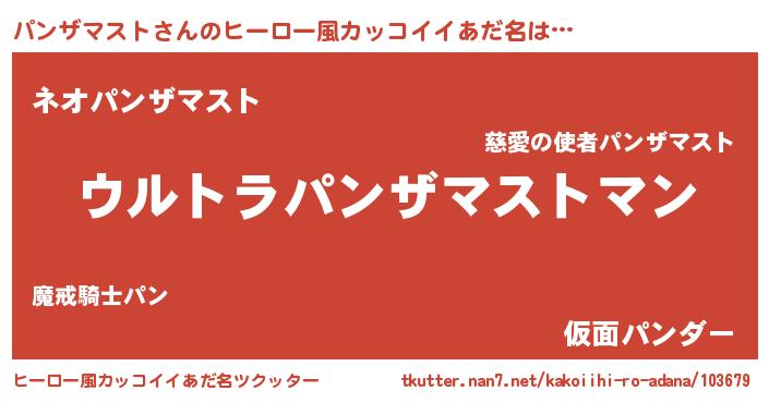 | 女子向けラノベタイトル風あだ名 | 『パンザマストの玉の輿計画!』 |