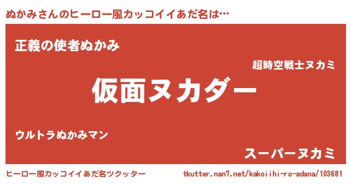 ぬかみさんのヒーロー風カッコイイあだ名をツクッター!