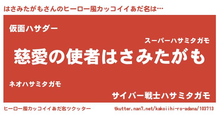 | ヘコむあだ名 | 『はさふぇ~』『はさみたがも(笑)』 |