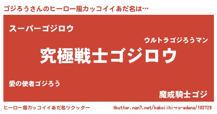 | 男性向けラノベタイトル風あだ名 | 『うちのゴジろうが世界を掌握している!』 |