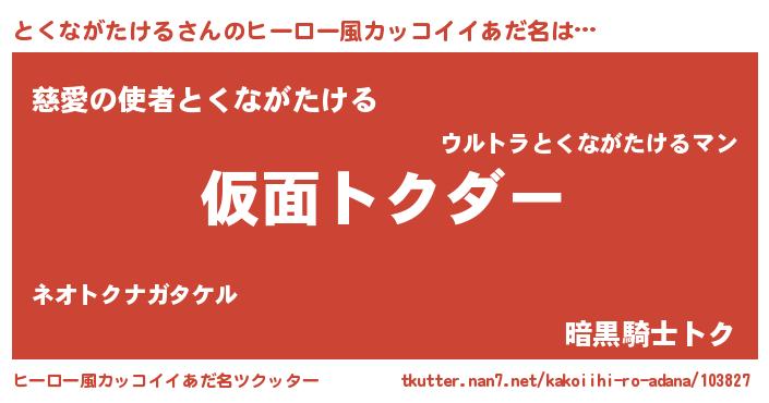 | 胡散臭い通販商品みたいなあだ名 | 『あなたにだけ特別に提供する世界で10本だけ現存している希少なブランデー…その名も「とくながたける」』 |