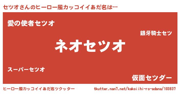 | 女子向けラノベタイトル風あだ名 | 『異世界で失敗しない100のセツオ』 |