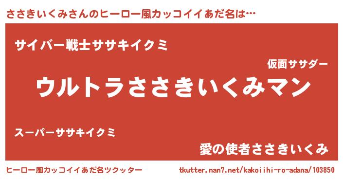| 女子向けラノベタイトル風あだ名 | 『ささきいくみの玉の輿計画!』 |