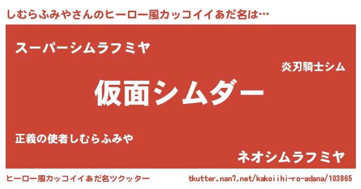| 意味不明あだ名 | 『住所不定無職しむらふみや(4歳)』 |