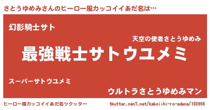 | 女子向けラノベタイトル風あだ名 | 『さとうゆめみストレイドッグス』 |