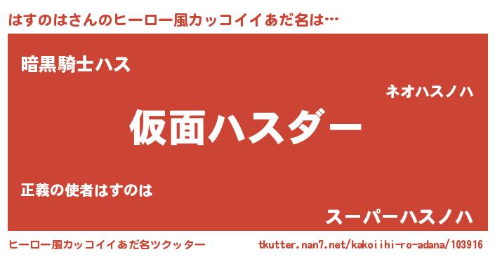 | 意味不明あだ名 | 『住所不定無職はすのは(7歳)』 |