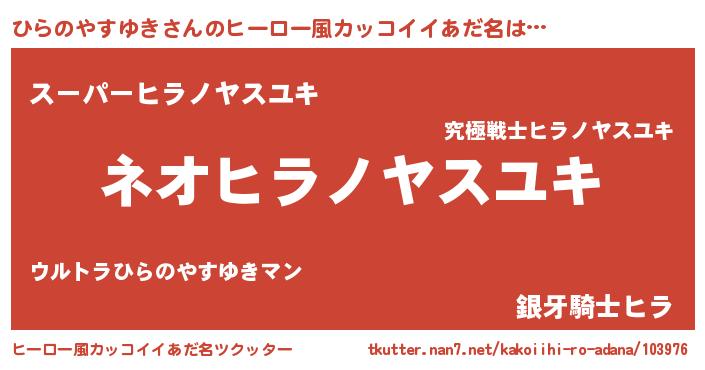 | ヘコむあだ名 | 『ひらのやすゆき(遠い目)』『ひらにゅー』 |