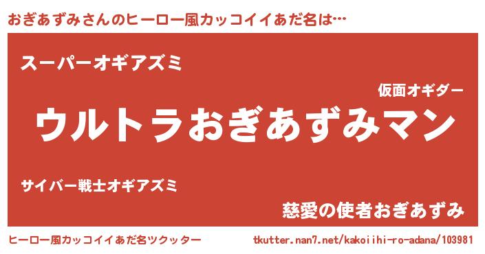| 伝説のあだ名 | 『秘められし忍者おぎあずみ』 |