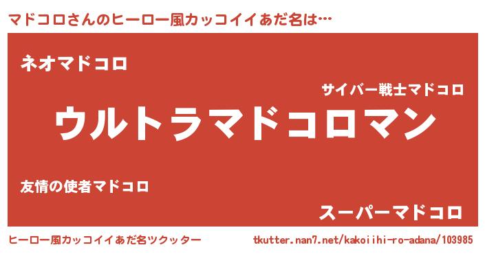 | 意味不明あだ名 | 『マドコロフォーエバー』『自称マドコロ』 |