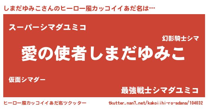 | 肩書あだ名 | 『しまだゆみこ大尉』『しまだゆみこ総統』 |