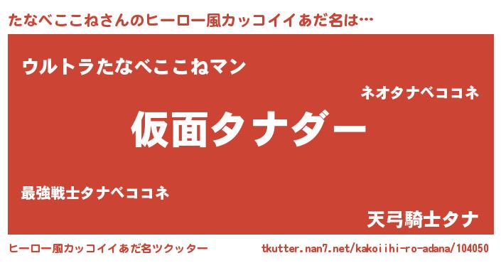 | 女子向けラノベタイトル風あだ名 | 『たなべここねの玉の輿計画!』 |