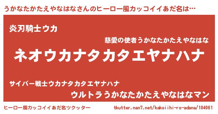 | 男性向けラノベタイトル風あだ名 | 『うかなたかたえやなはなという概念が存在しない退屈な世界 』 |