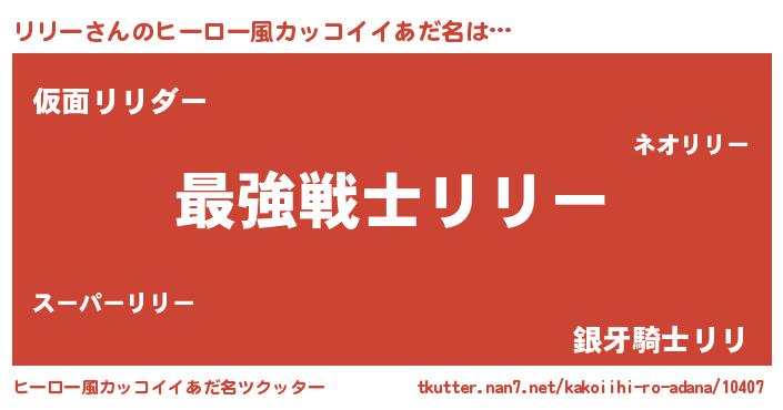 | 男性向けラノベタイトル風あだ名 | 『Re:リリーから始める異世界生活』 |