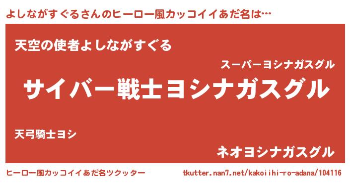 | 男性向けラノベタイトル風あだ名 | 『Re:よしながすぐるから始める異世界生活』 |