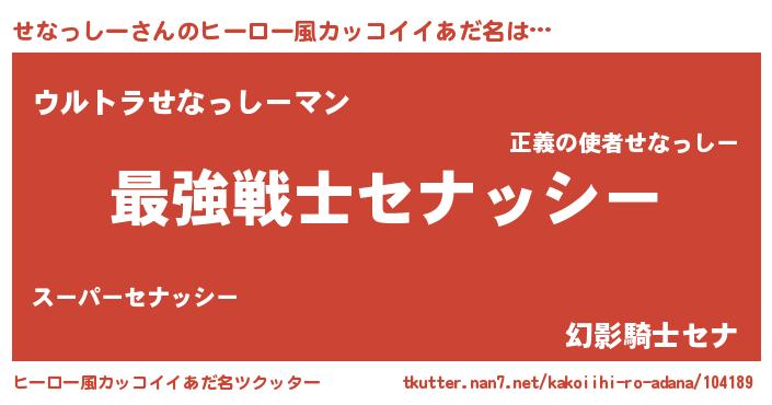 | ファンタジー風あだ名 | 『ゼセナトゥ』『エターナルセナッシーー』 |