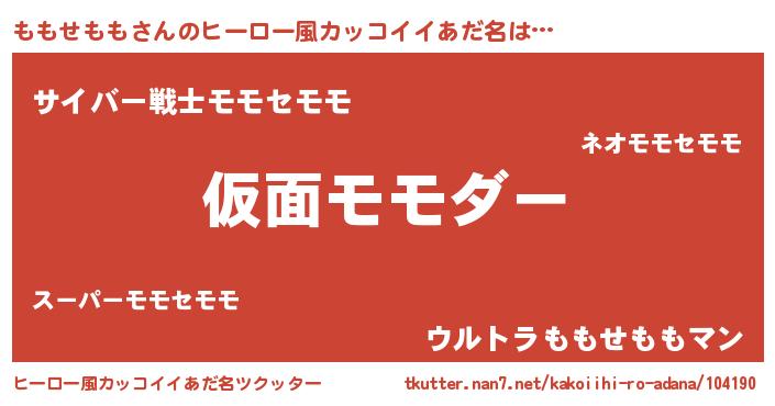 | 女子向けラノベタイトル風あだ名 | 『ももせももの玉の輿計画!』 |