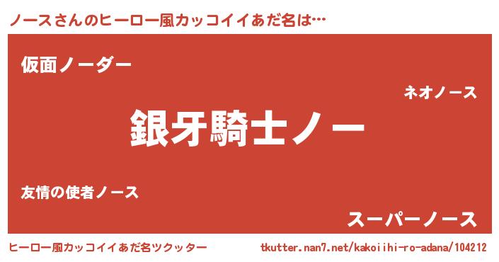 | 女子向けラノベタイトル風あだ名 | 『ノースの卵を拾いまして』 |
