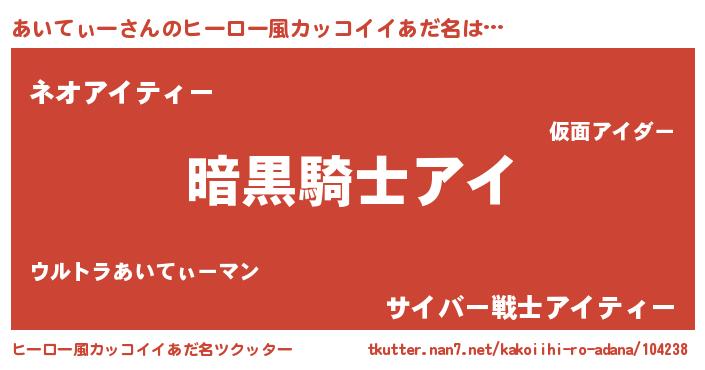 あいてぃーさんのヒーロー風カッコイイあだ名をツクッター!