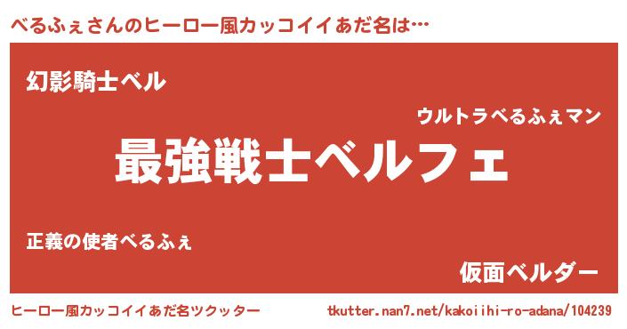 | 意味不明あだ名 | 『自称べるふぇ』『べるふぇフォーエバー』 |