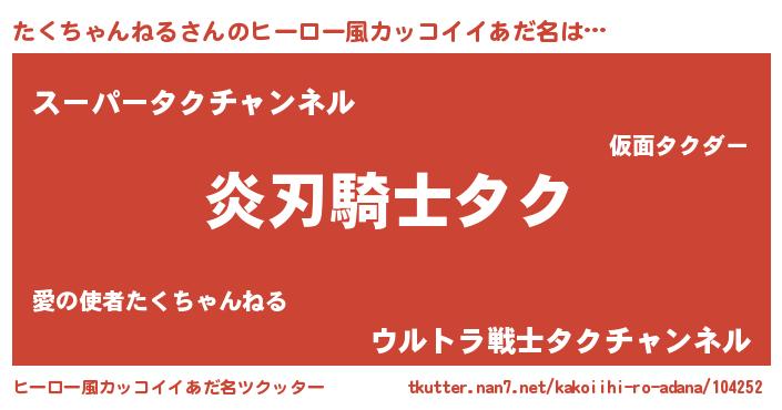 | 意味不明あだ名 | 『とにかく怪しいたくちゃんねる』 |