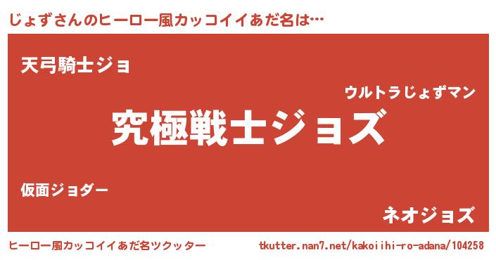 | 男性向けラノベタイトル風あだ名 | 『Re:じょずから始める異世界生活』 |