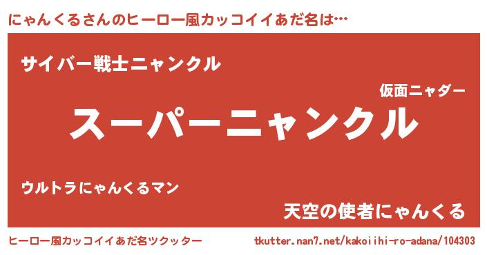 | 女子向けラノベタイトル風あだ名 | 『にゃんくるの玉の輿計画!』 |