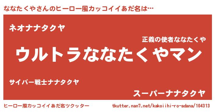 | 男性向けラノベタイトル風あだ名 | 『はたらくななたくやさま!』 |