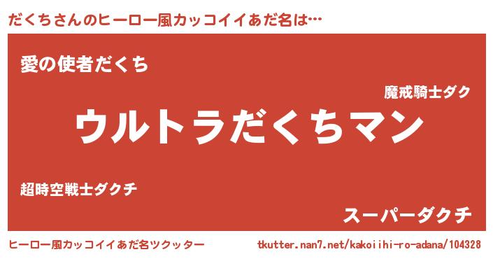 | 男性向けラノベタイトル風あだ名 | 『うちの娘の為ならば、俺はもしかしたらだくちも倒せるかもしれない。』 |