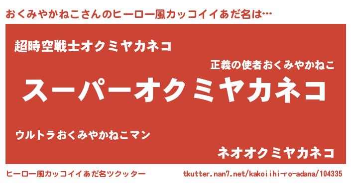 | 男性向けラノベタイトル風あだ名 | 『おくみやかねこの憂鬱』 |