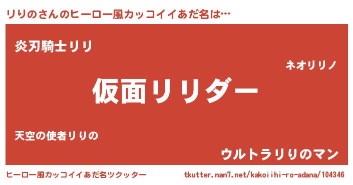 | ポケモン風あだ名 | 『リーリイ』『ヒリリノ』『ゼニリリ』 |