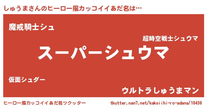 | 女子向けラノベタイトル風あだ名 | 『しゅうま姫と円卓の騎士』 |