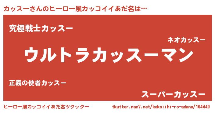 | 男性向けラノベタイトル風あだ名 | 『うちの娘の為ならば、俺はもしかしたらカッスーも倒せるかもしれない。』 |
