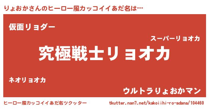 | 男性向けラノベタイトル風あだ名 | 『Re:りょおかから始める異世界生活』 |