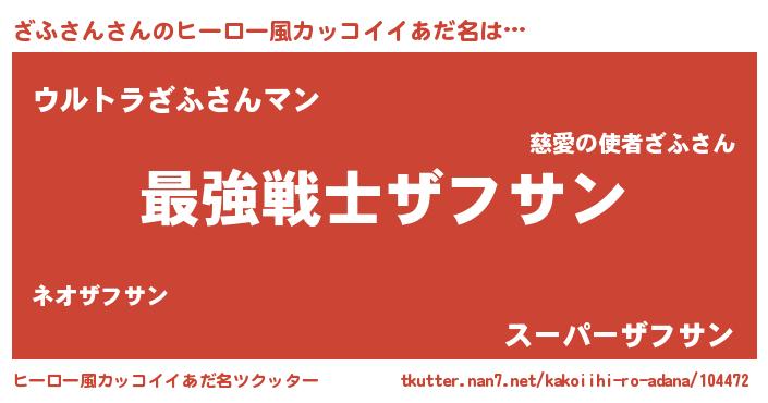 | 男性向けラノベタイトル風あだ名 | 『Re:ざふさんから始める異世界生活』 |