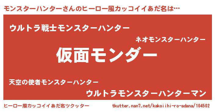 | 欧米人風あだ名 | 『トリンドルモンスターハンター』 |