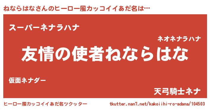 | 胡散臭い通販商品みたいなあだ名 | 『100人中100人が認めたイリジウム磁石…その名も「ねならはな」』 |