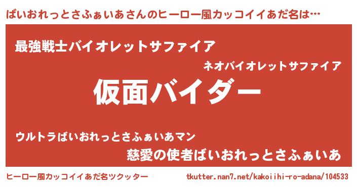 | 意味不明あだ名 | 『住所不定無職ばいおれっとさふぁいあ(1歳)』 |