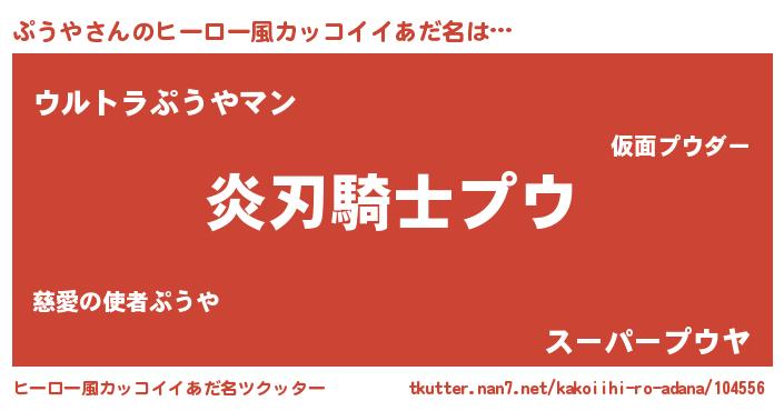 | 女子向けラノベタイトル風あだ名 | 『ぷうや様がみてる』『死神ぷうやの再婚』 |