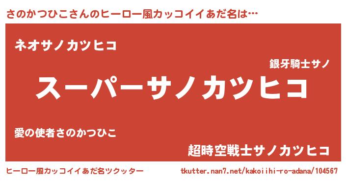 | 男性向けラノベタイトル風あだ名 | 『サノカツヒコアートオンライン』 |
