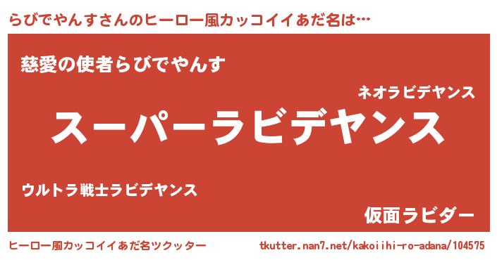 | 男性向けラノベタイトル風あだ名 | 『らびでやんすの憂鬱』 |