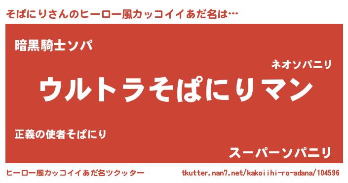 | 男性向けラノベタイトル風あだ名 | 『転生したらそぱにりだった件』 |
