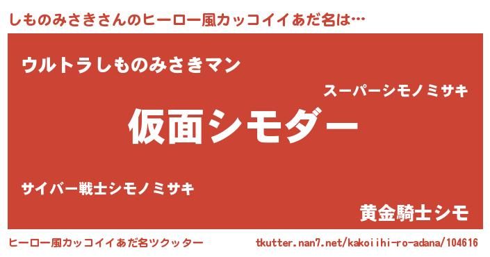 | 意味不明あだ名 | 『住所不定無職しものみさき(12歳)』 |