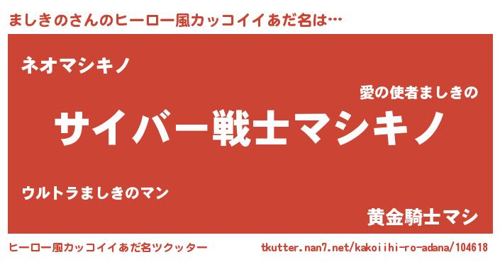 | 意味不明あだ名 | 『自称ましきの』『永久保存ましきの』 |