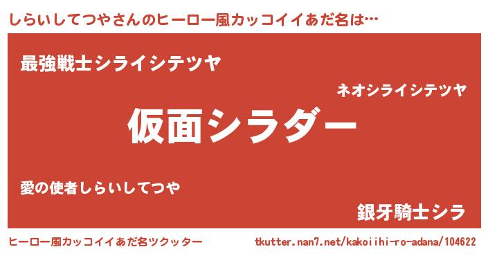 | 男性向けラノベタイトル風あだ名 | 『この素晴らしい世界にしらいしてつやを!』 |